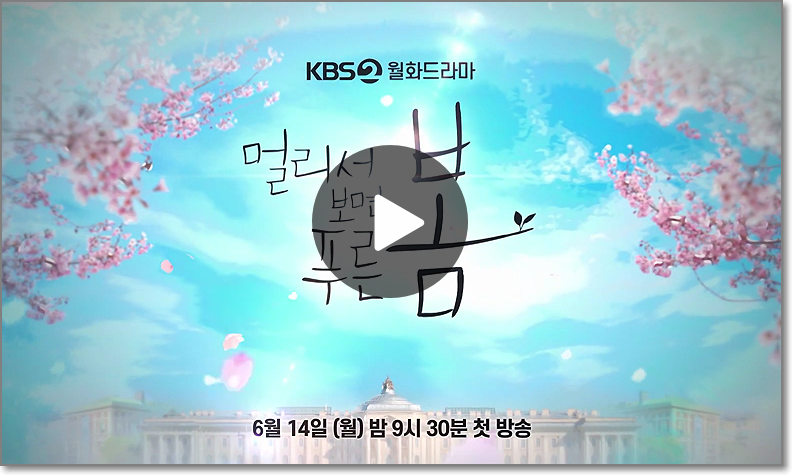 '멀리서 보면' 청춘일지도 모를, '20대' 성장 드라마. 예의 없지만 대물공 강두식, 까칠하지만 솔직한 진주하의 뜨거운 만남! 그는 점점 아름답게 자라는 아이를 멀리서 지켜보며 마음 속에서 피어나는 낯선 감정을 자각하게 되지만 모든 것을 애써 무시한다. 은인의 부탁을 충실히 수행하는 준혁. 매주 월,화 밤 9시 30분kbs2tv 멀리서 보면 푸른 봄 본방사수!